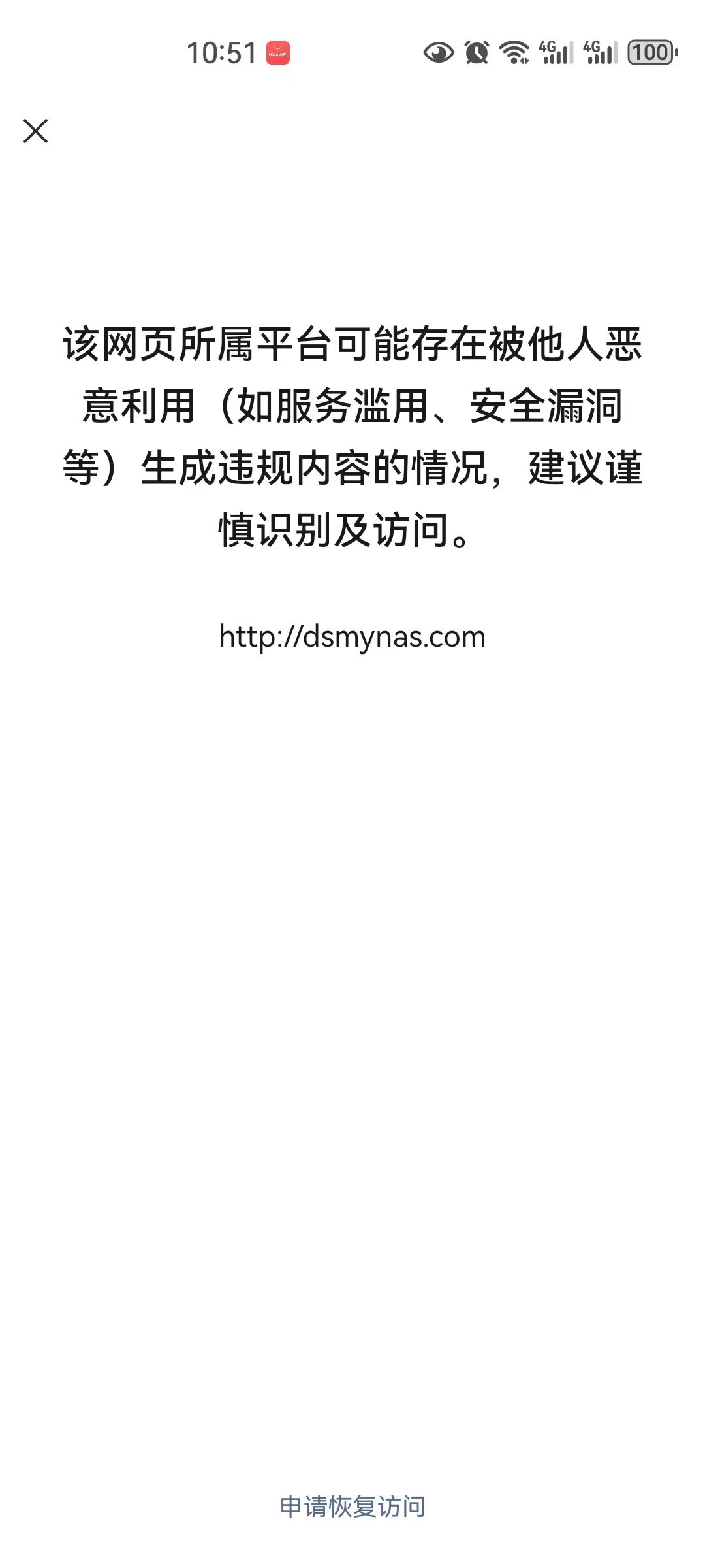 你好,经审核,域名【dsmynas.com】下的内容存在违反《微信外部链接内容管理规范》,暂无法恢复微信内直接访问的服务。
