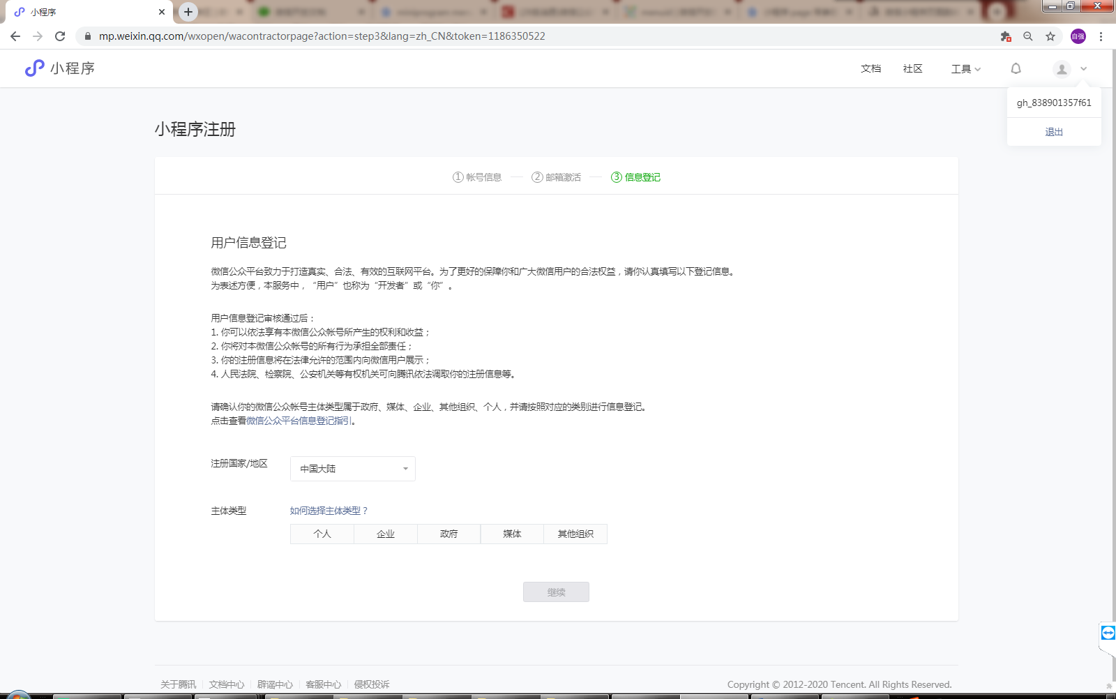 这里只有注册完成后才能注销吧。我没操作过。你可以注册个人小程序。