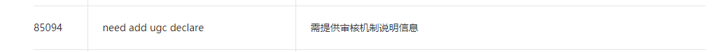 小程序提交时不了显示是提交失败,code:85094,msg:need add ugc declare rid: 6183771c-2f696ac7-5ad5f2fd,这个是什么意思呀小程序是政府认证的