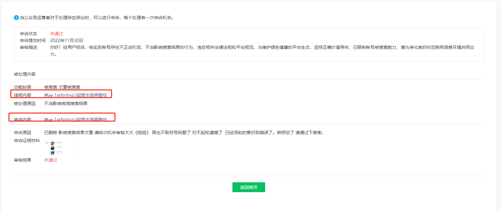 申诉时候也删除了文章,驳回一个不通过。
