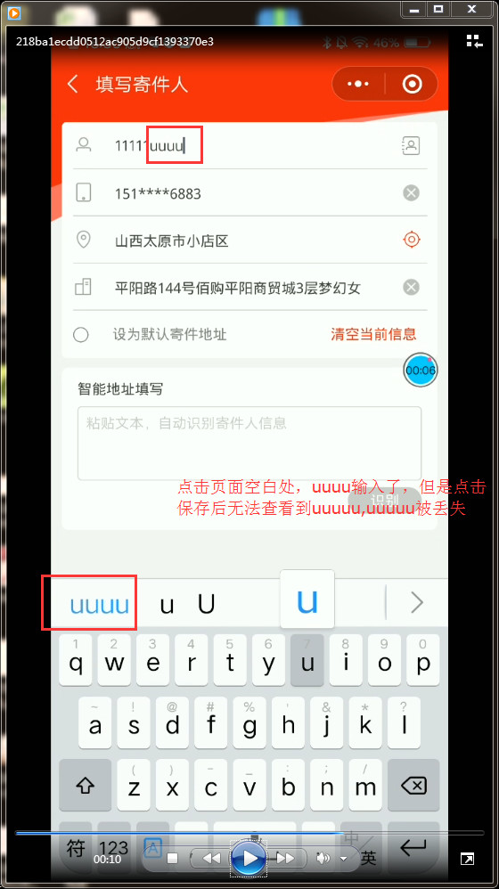 input框中随机输入内容,然后不点击键盘的enter键,点击保存,调用接口,会发现点击键盘空白处输入input的内容无法显示