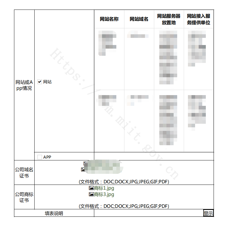 我所在的山东地区在申请ICP时,是无法填写小程序相关信息的,所以在《行政不予受理通知书》中体现不出小程序相关。下图为申请ICP时填写的表格: