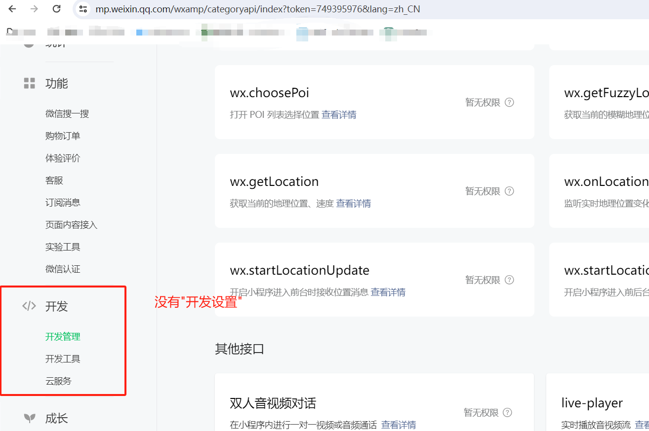 官方文档中介绍的配置域名的位置是"小程序后台-开发-开发设置-服务器域名"。但是我并没有找到。是因为我没有开通什么服务吗?还是我没有找对位置?