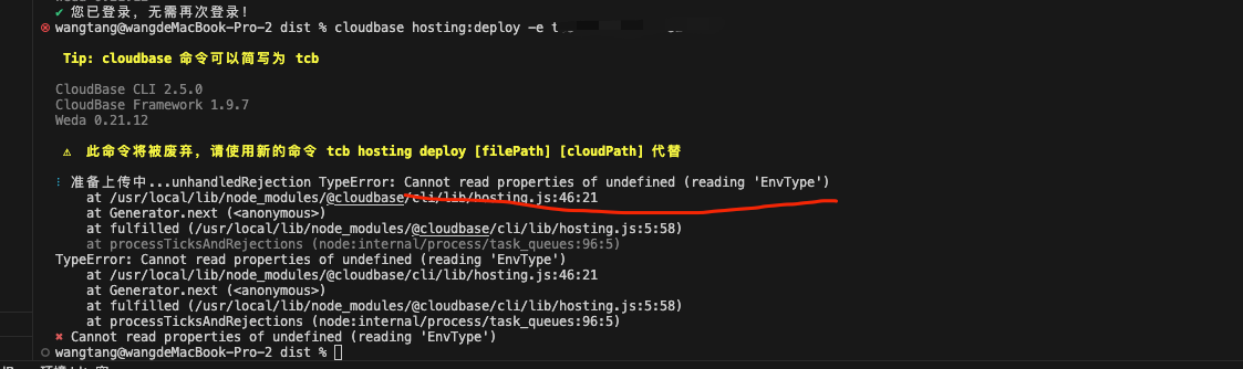 云开发静态部署报错:Cannot read properties of undefined (reading 'EnvType')