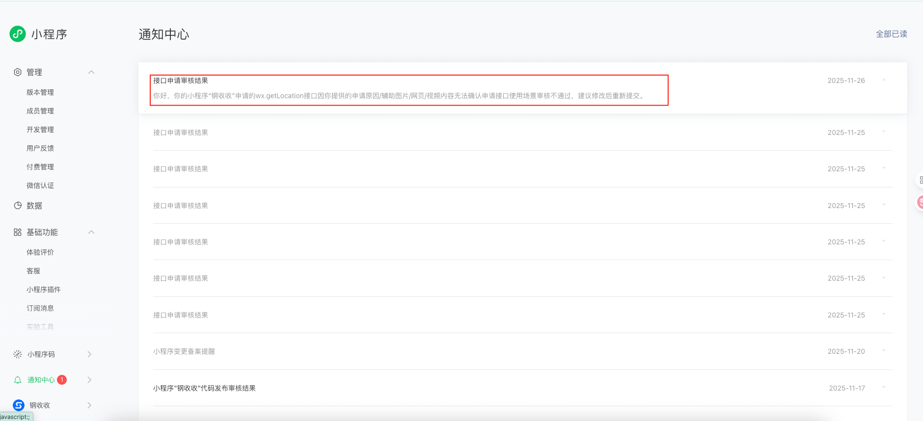 小程序开发管理wx.getLocation的API一直审核不通过,填写申请信息都正常,目前需要通过这个开发api的审核标准,影响到我们团队项目正常上线