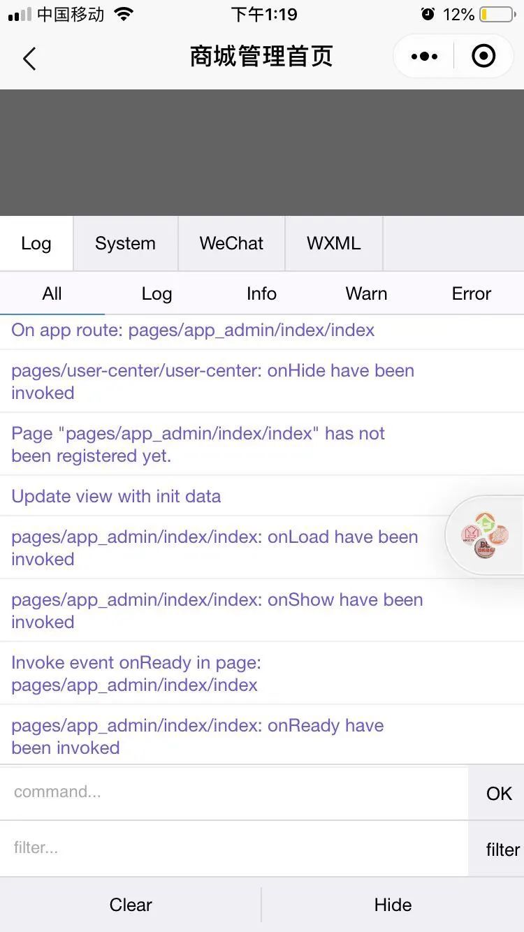 但手机扫描开发工具上的预览二维码时,手机显示空白页,打开手机调试是这样显示的(如下图)