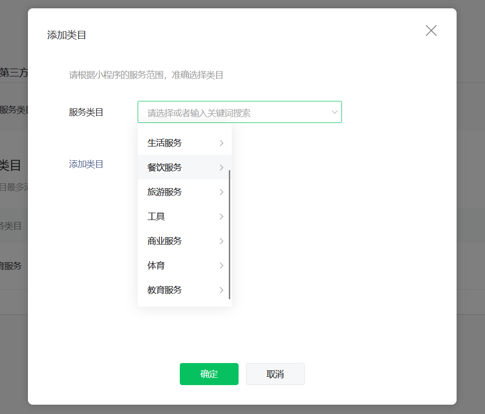 你的小程序是个人主体吧?目前个人主体暂未开放【社交】类目,如有需要建议使用非个人主体账号,可参考“开放的服务类目”文档:https://developers.weixin.qq.com/miniprogram/product/material/#%E7%A4%BE%E4%BA%A4