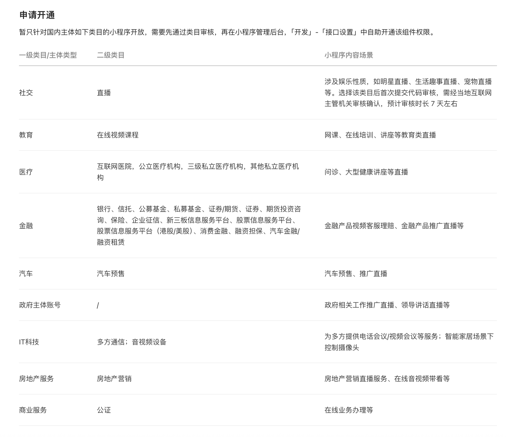 目前 live-player 组件暂对部分类目开放,你添加的【教育服务——在线教育】类目不在开放范围内,详情可参考文档:https://developers.weixin.qq.com/miniprogram/dev/component/live-player.html#%E7%94%B3%E8%AF%B7%E5%BC%80%E9%80%9A