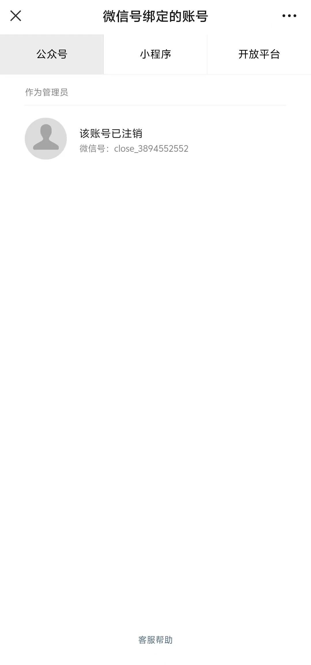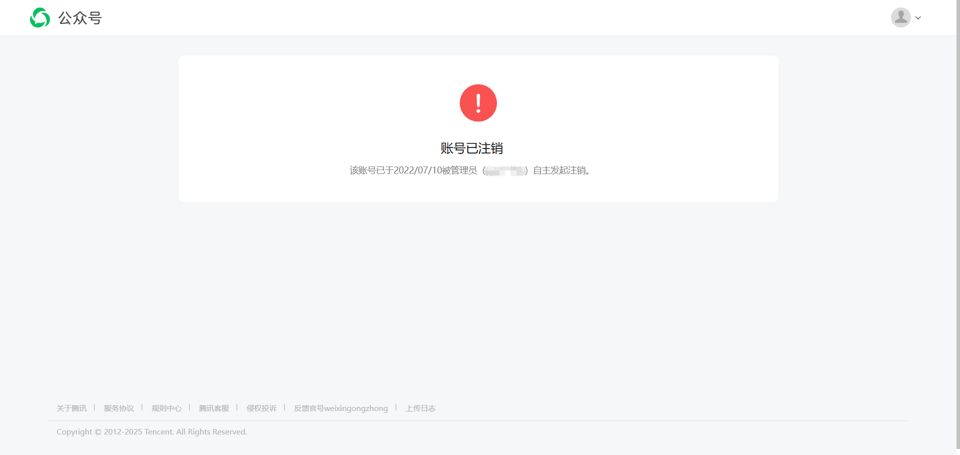 原微信移动端公众平台安全助手可找到已注销微信公众号,网页也可用微信登录,登录显示“账号已注销”,无法自行操作。