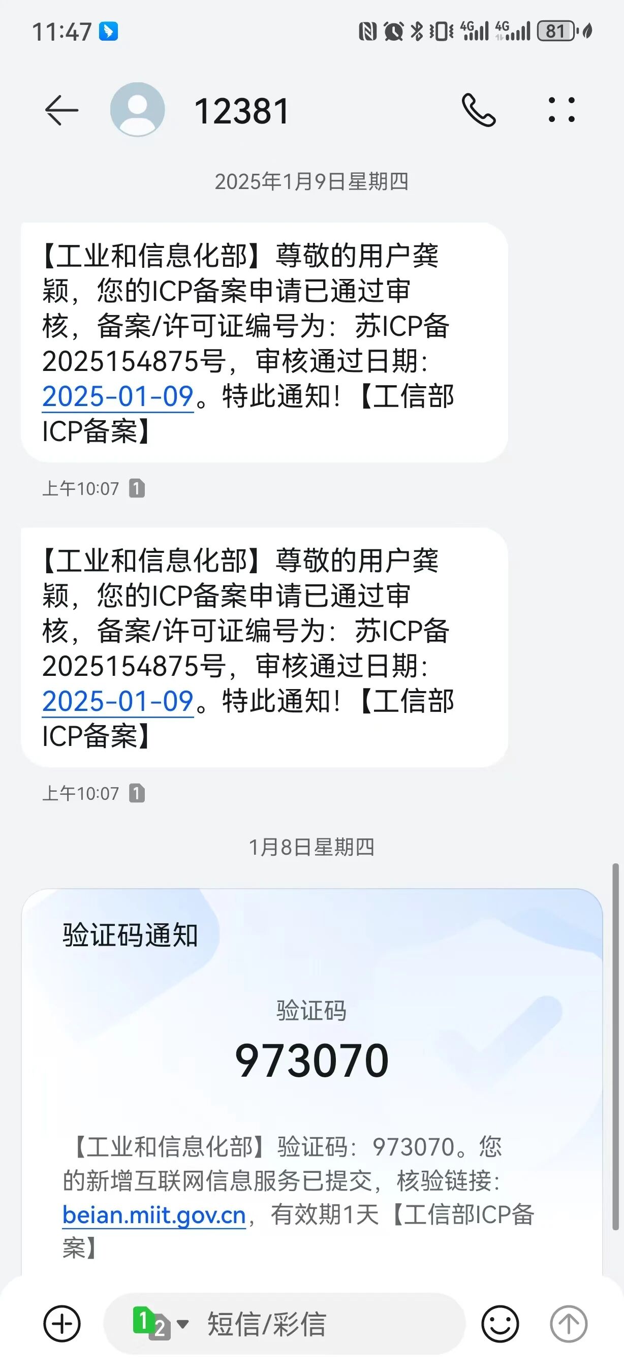 看错了吧。这个是2025-01-09,现在是2026-01-13,不可能你的小程序备案一年还未备案通过,都不是一个小程序。