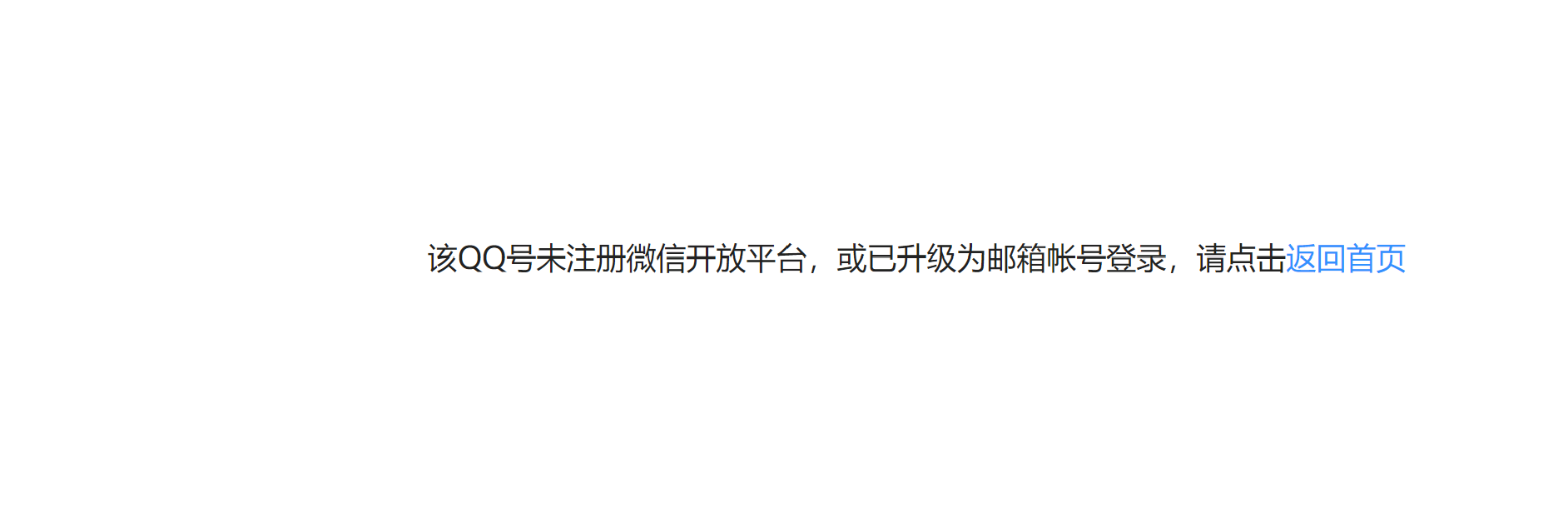 2、按照下面的提示“QQ号注册的老用户,点此登录” 按提示操作 提示“该QQ号未注册微信开放平台......”
