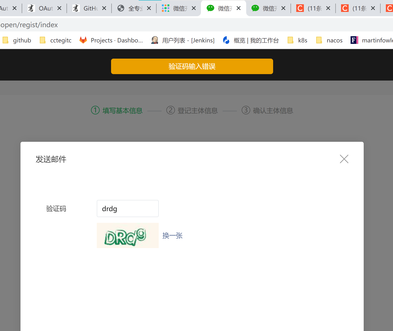 1、微信开放平台点登陆 要求输入邮箱账号 按提示操作 提示“该邮箱账号不存在......”