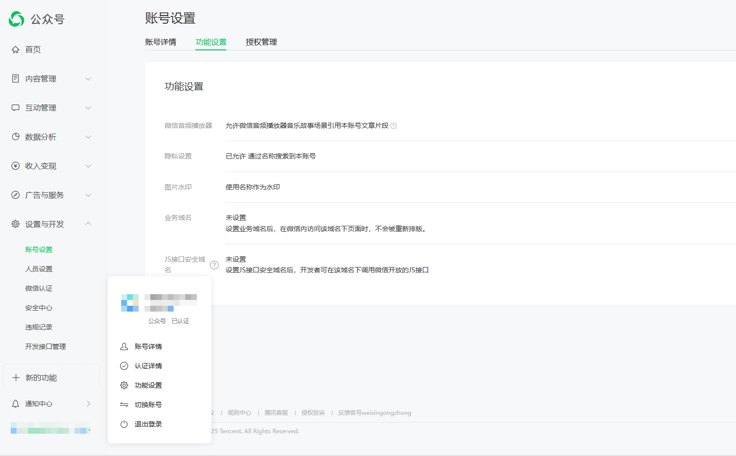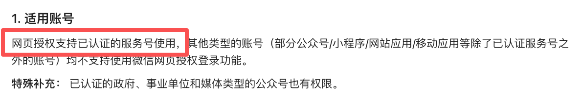 2、一般是已完成微信认证的服务号才支持网页授权功能,后台才会有「网页授权域名」的配置入口。你的账号类型是公众号(即原订阅号)不支持。可参考文档说明:https://developers.weixin.qq.com/doc/service/guide/h5/auth.html