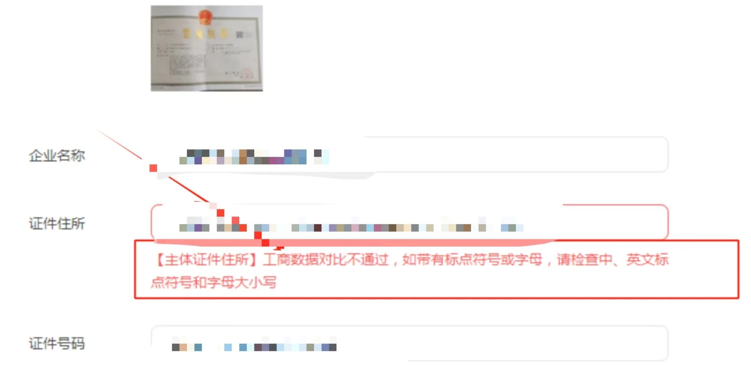 看下国家企业信用信息公示系统里面的经营场所跟你填的一不一样