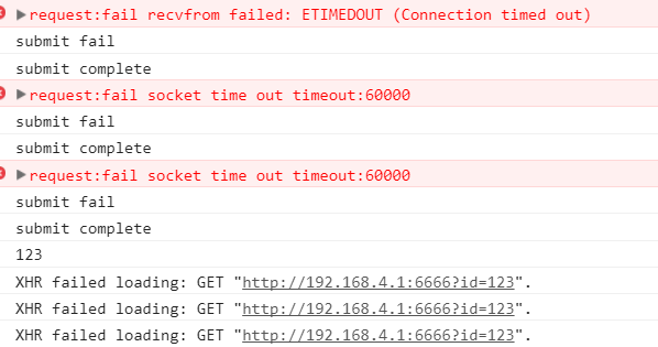 已经知道硬件wifi模块的名字和密码还有mac,连接成功过后,通过wx.request发起请求,有时报错有时不会这是为什么