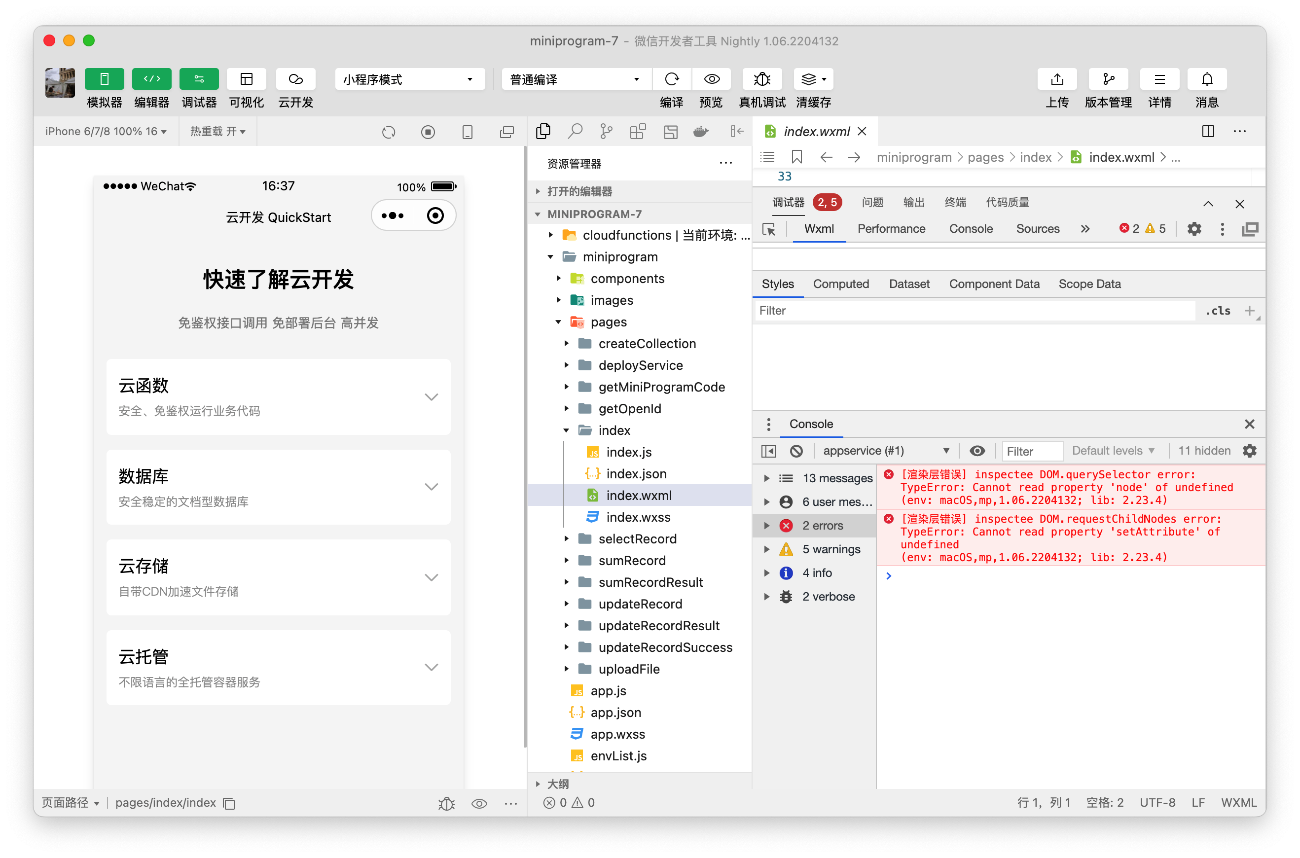 新创建云开发官方默认模板,运行就这样了