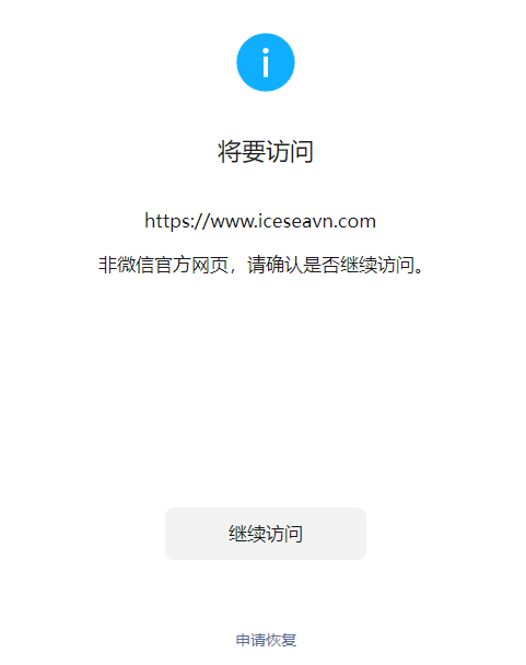 https://www.iceseavn.com/ ,已经绑定微信公众号,国外客户的微信打开提示这个界面,域名网站面向国外群体,麻烦管理员解除拦截可以?谢谢!