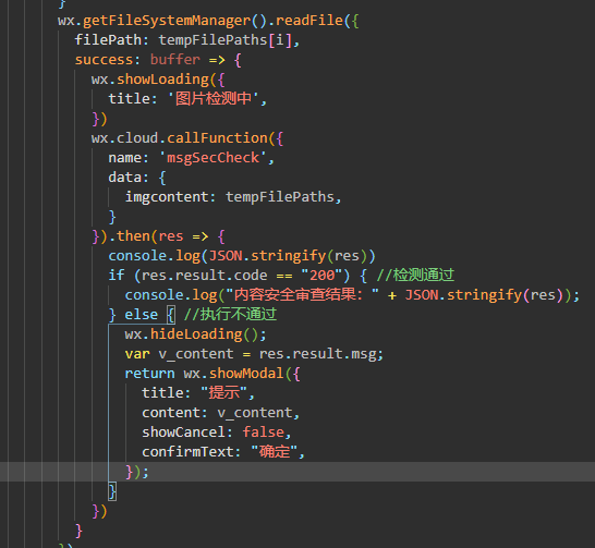 if (res.result.code == "200") { //检测通过