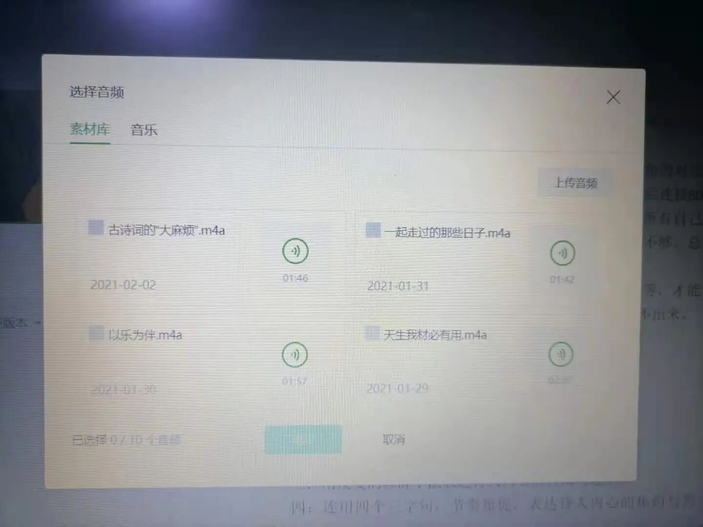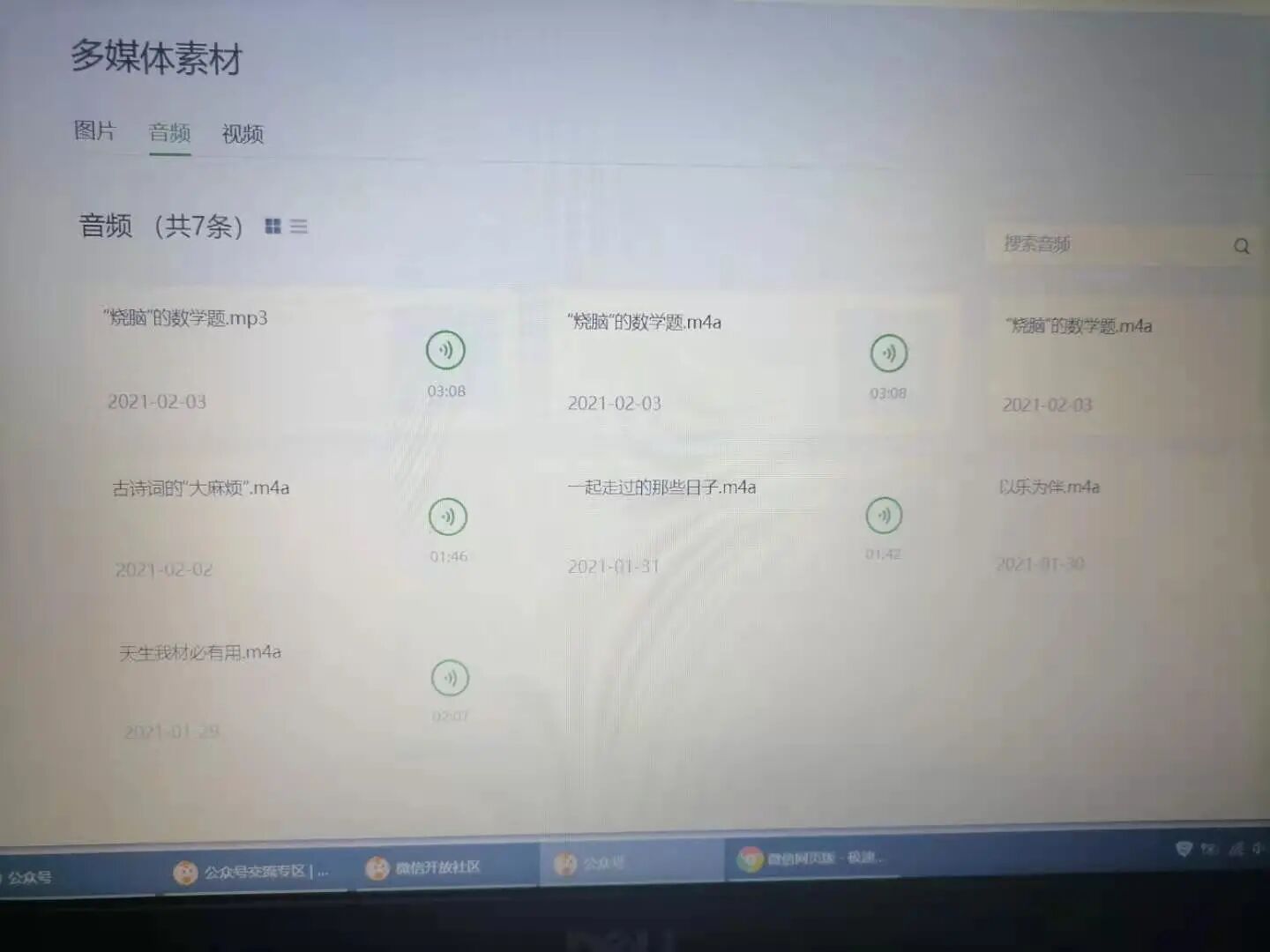 我在编辑公众号文章时,需要插入音频,点“音频”,选择“素材库”,”本地上传“,明明提示上传成功了,但在插入时素材库内没有。同一个文件已经上传三次了,素材库里没有。在点开“多媒体素材”,“音频”里能看到上传的素材,为什么“素材库”没有呢?