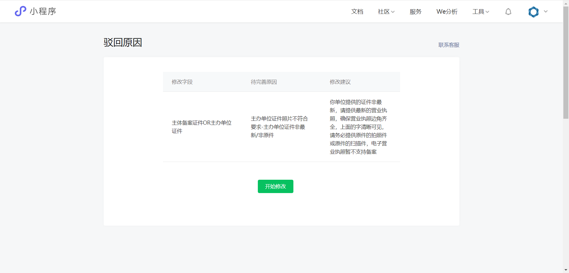 公司的投资人发生变更导致营业执照核准日期变化,但是并未涉及营业执照更改;进行微信小程序备案时却被驳回,提示营业执照非最新,如何处理?