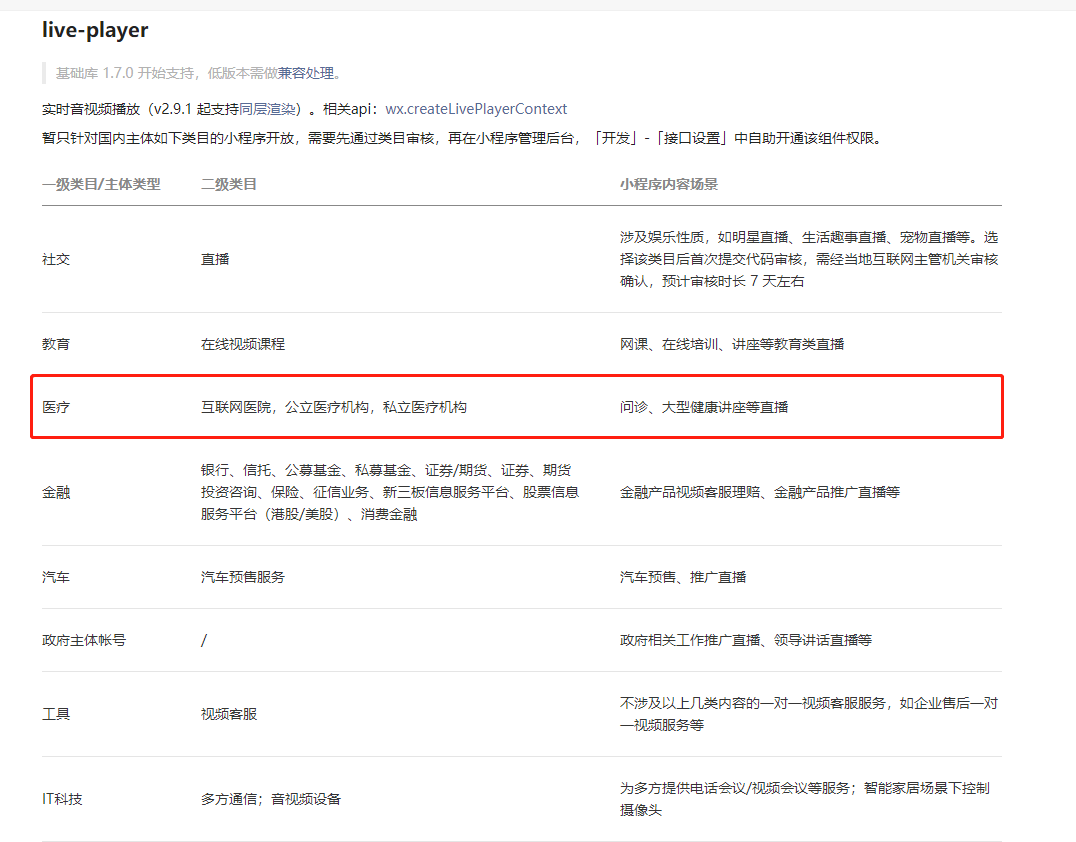 看小程序直播的文档里好像是没有医疗类目的,这个是live-player组件