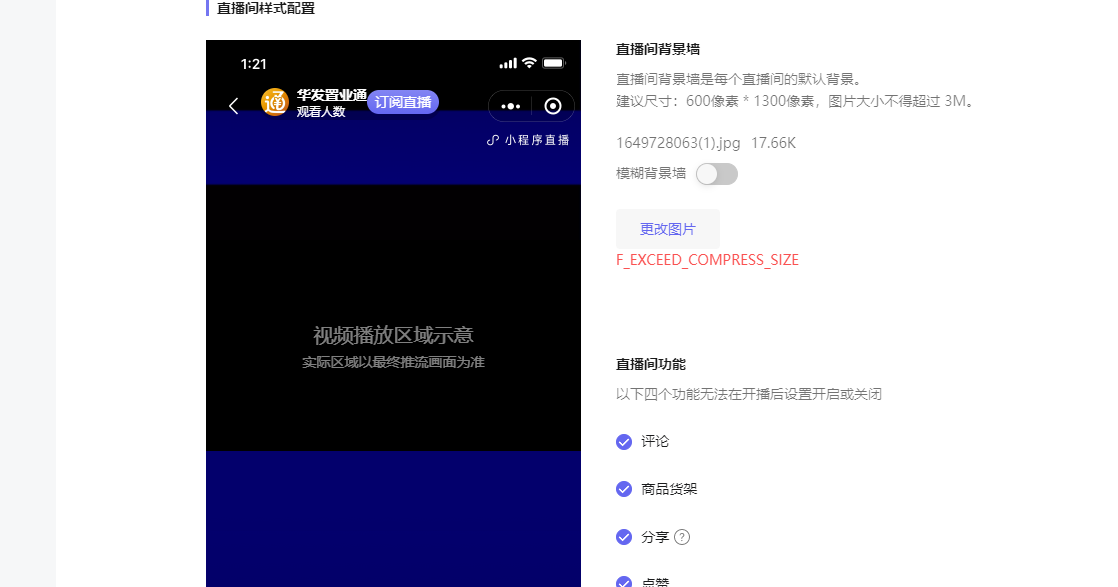 微信小程序直播间背景墙上传-->上传图片 时间2022年4月12号 10:10 F_EXCEED_COMPRESS_SIZE