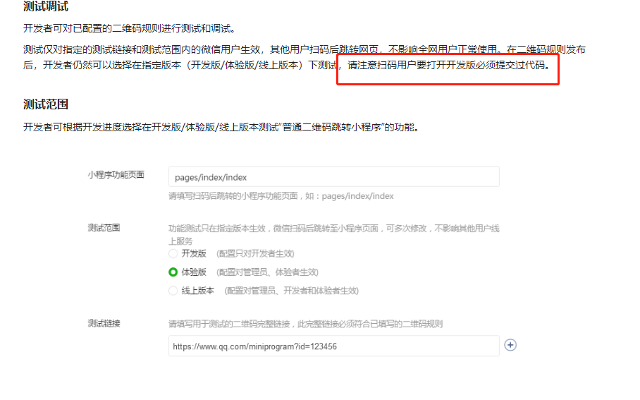 这个二维码图片设置的是体验版本,扫码后打开的是生产版本,截图如下