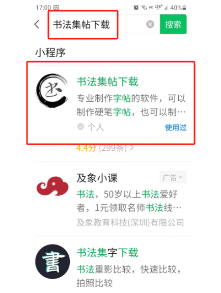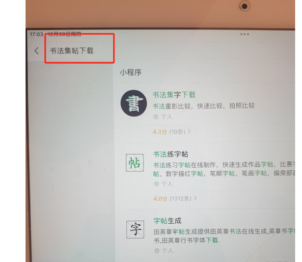 最早的时候小程序名称叫《书法集字下载》,后来改成了《书法集帖下载》,难道苹果下是因为这个原因,所以直接搜索之前软件名称了?