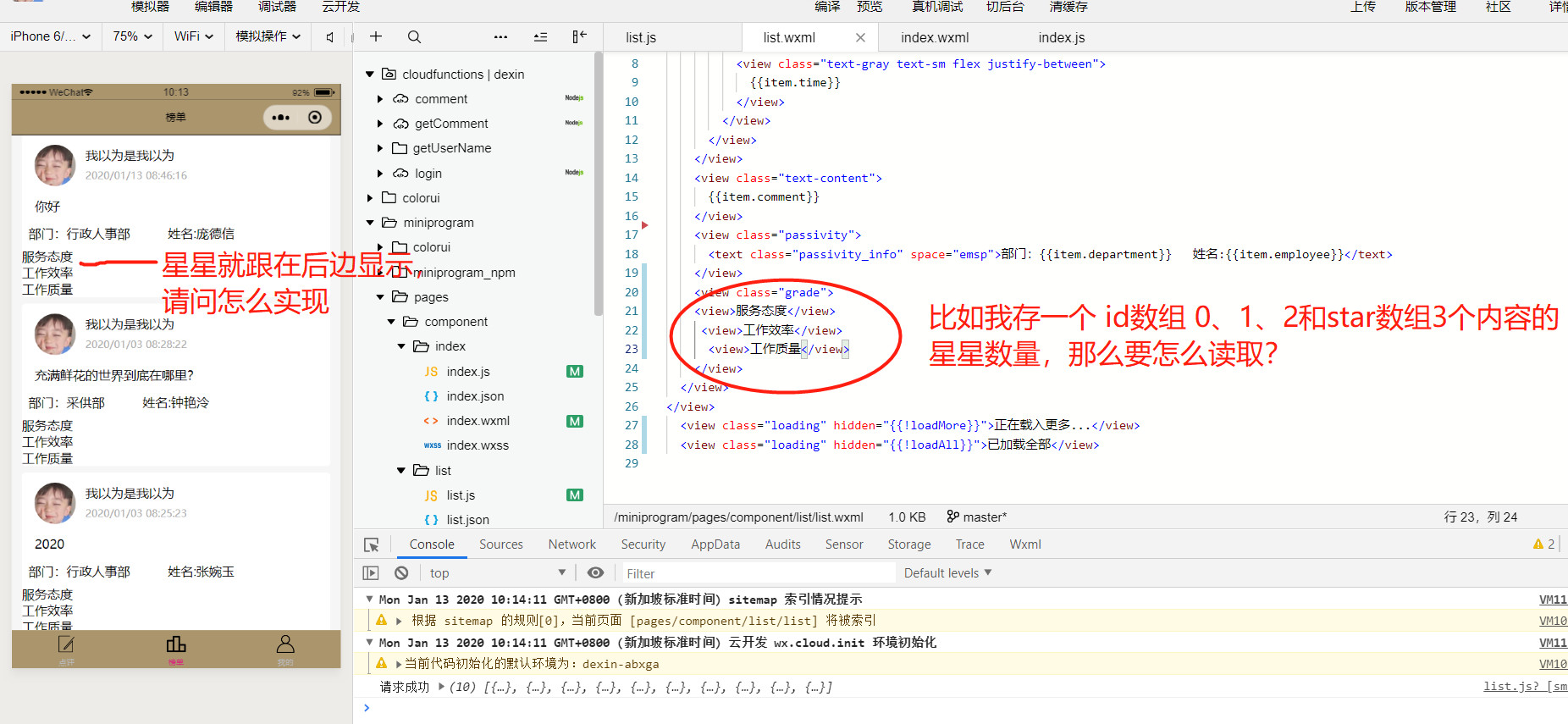 我想存这些评分到云数据库,然后另一个页面读取出来。