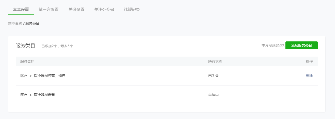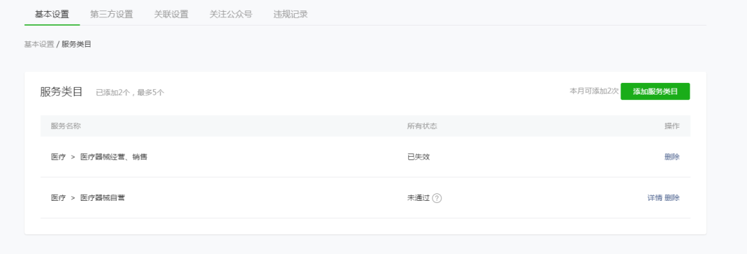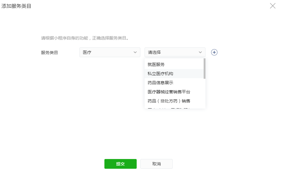 你好是这样,我之前选择的“医疗器械经营、销售”类目,显示失效了,造成我在授权平台的小程序更新不了了,所以我来更新类目,但是发现之前的“医疗器械经营、销售”被移除了,剩下的选项没有一个我能选的了,请看图