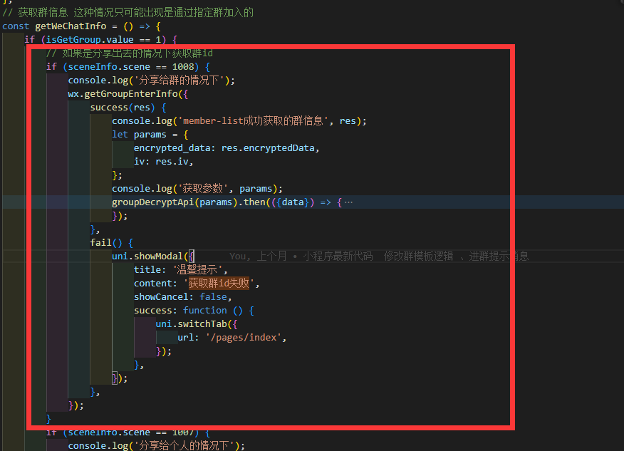 有没有哪位大佬能解惑 同一个群 有的用户能获取到群id 有个人用户一直是fail 删除小程序重新进入都不行