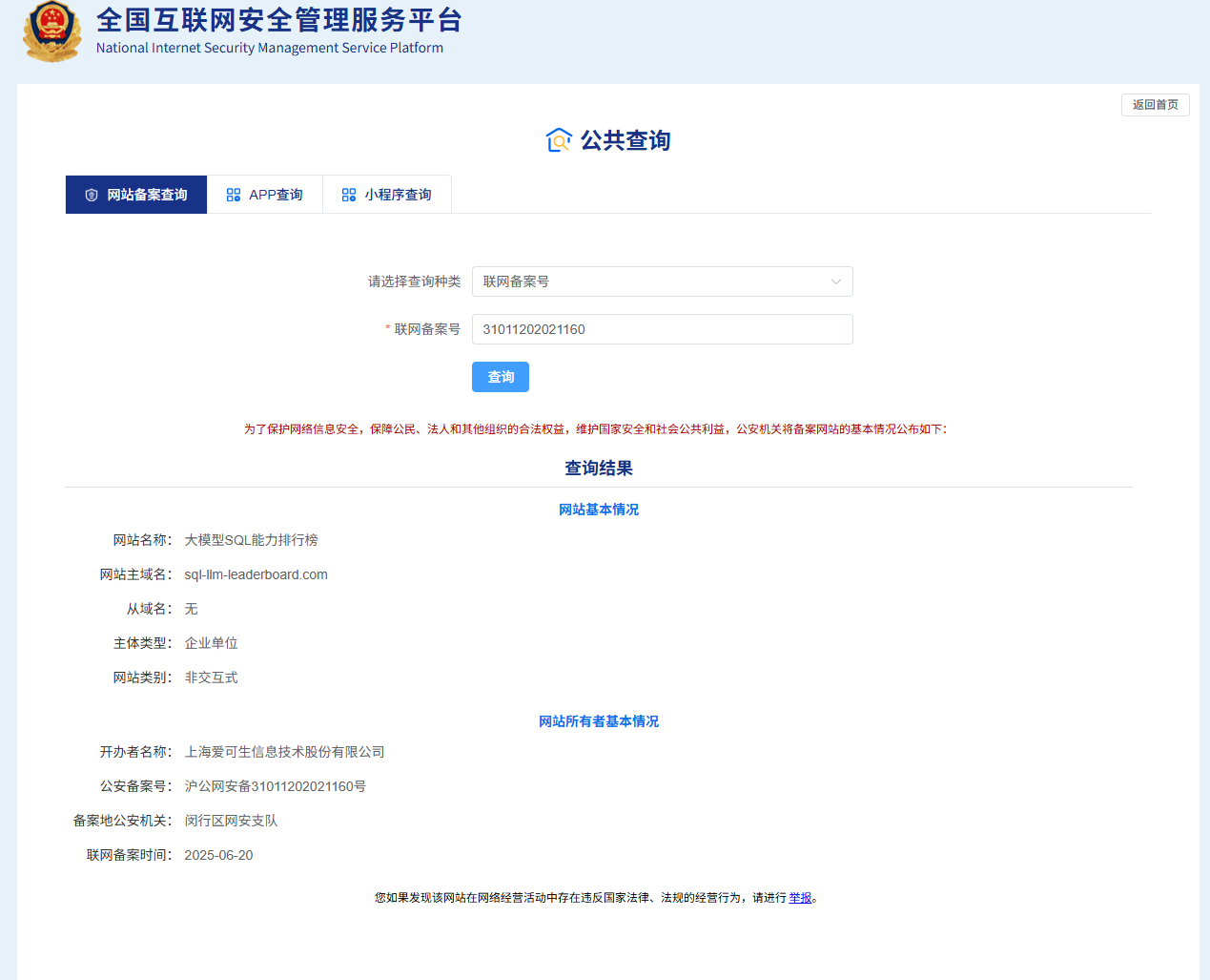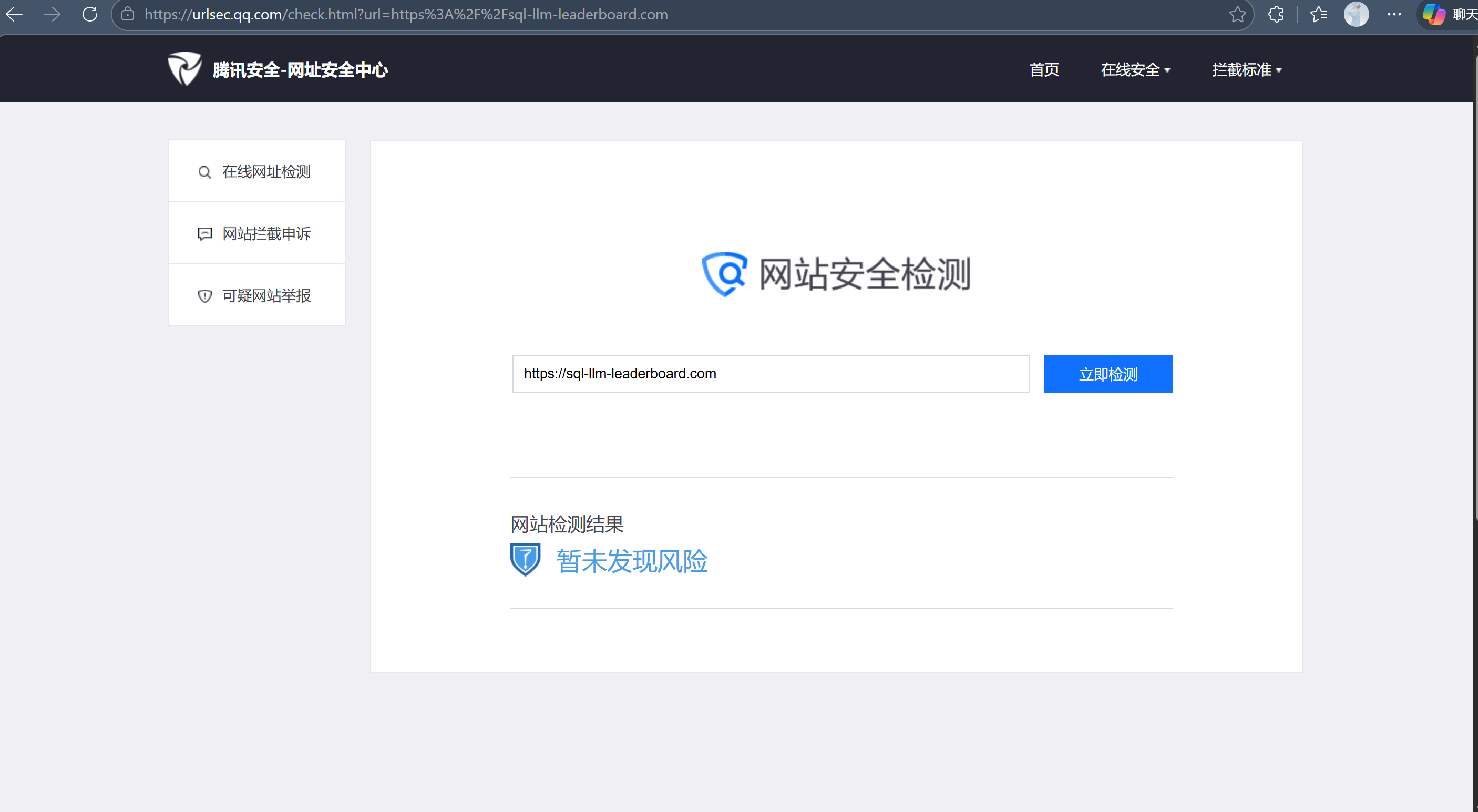 我们网站的域名是 sql-llm-leaderboard.com,近期我们站点用户反馈微信内打开该域名链接时,出现“网页存在安全风险,为维护绿色上网环境,已停止访问。”提示,严重影响了用户体验和网站的正常访问。经过研发团队全面自查: