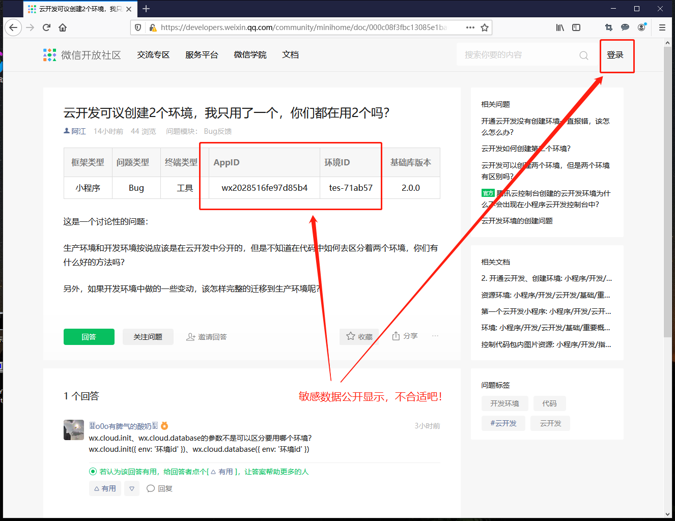 云开发 板块提交问题,敏感信息公开显示,不合适吧?