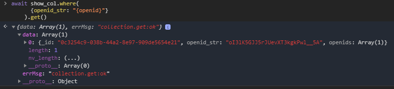 当查询条件为{openid_str: "{openid}" }时,(openid_str 为字符串类型)