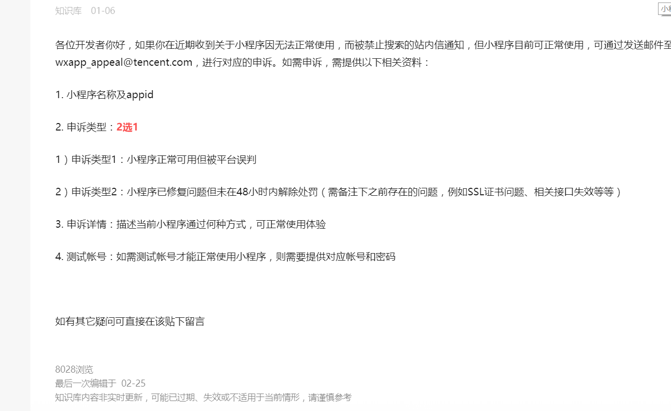 我们的小程序被禁止搜索了,然后申诉了一次失败,现在按要求修改更新了一个新的版本,但是没有了申诉的入口。发过一次贴,感谢客服解答,现已把发布活动的各个字段全部加入检测,请重新审核,非常感谢~