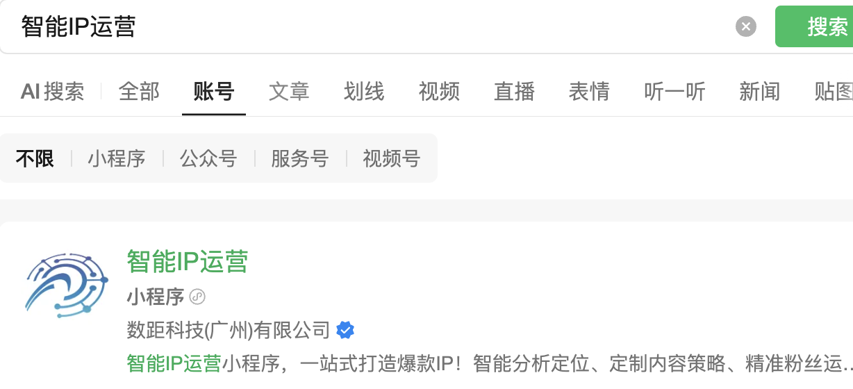 备案通过后2026.03.19发布线上版本,至今为止无法通过小程序名称智能IP运营搜索到小程序。