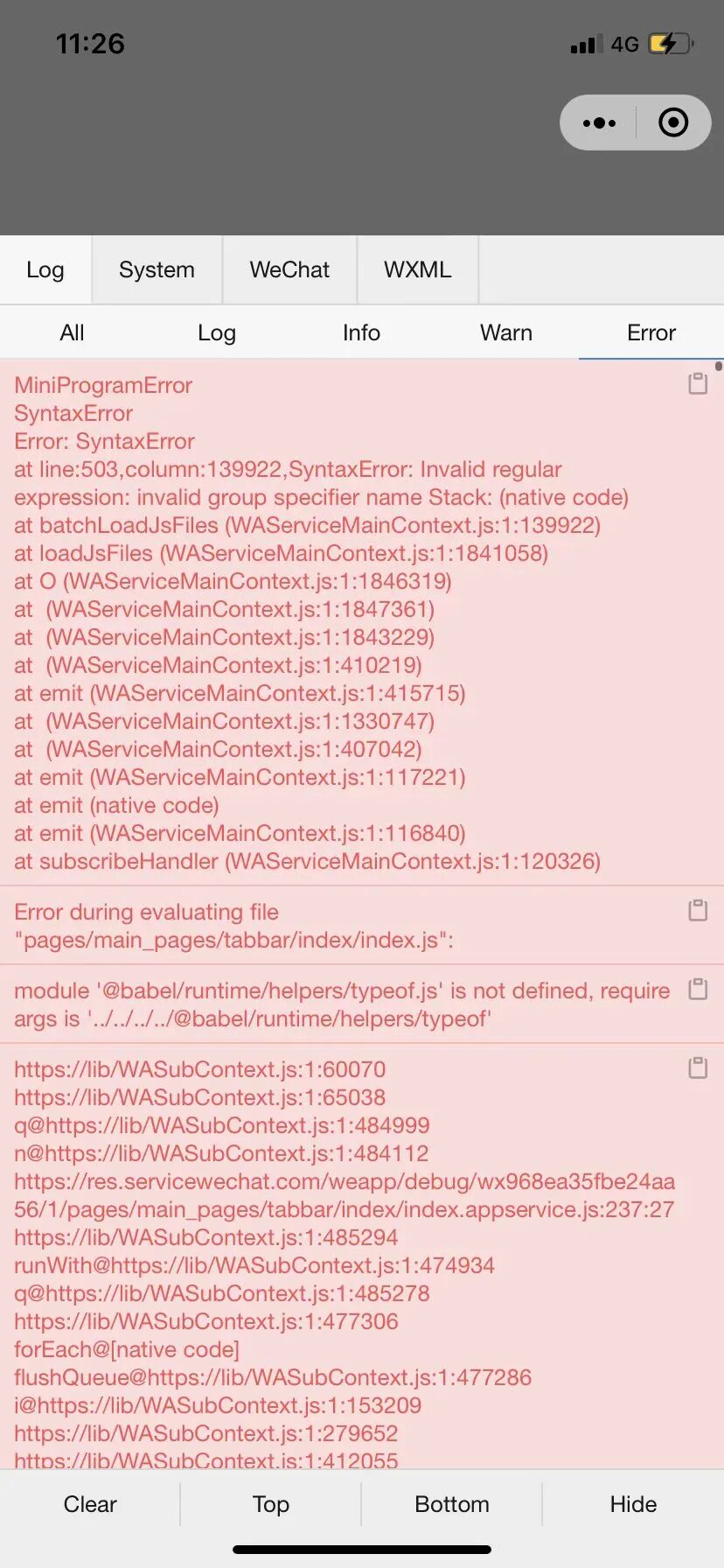 小程序打开白屏,应该是框架报错,目前只有在IOS的微信8.0.25中复现,经测试和基础库版本无关。系统信息和报错信息如下