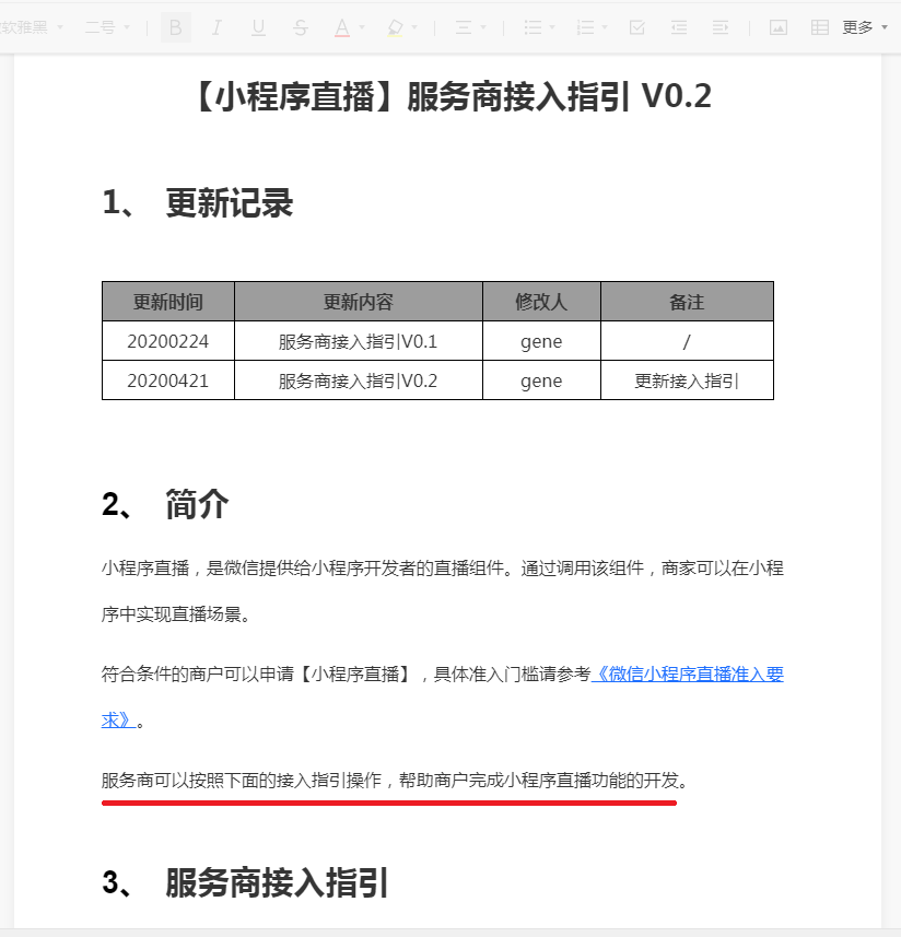 微信官方【小程序直播】插件,服务商接入指引 V0.2 - 腾讯文档 https://docs.qq.com/doc/DZHJ6Z0hNWWRUVk94