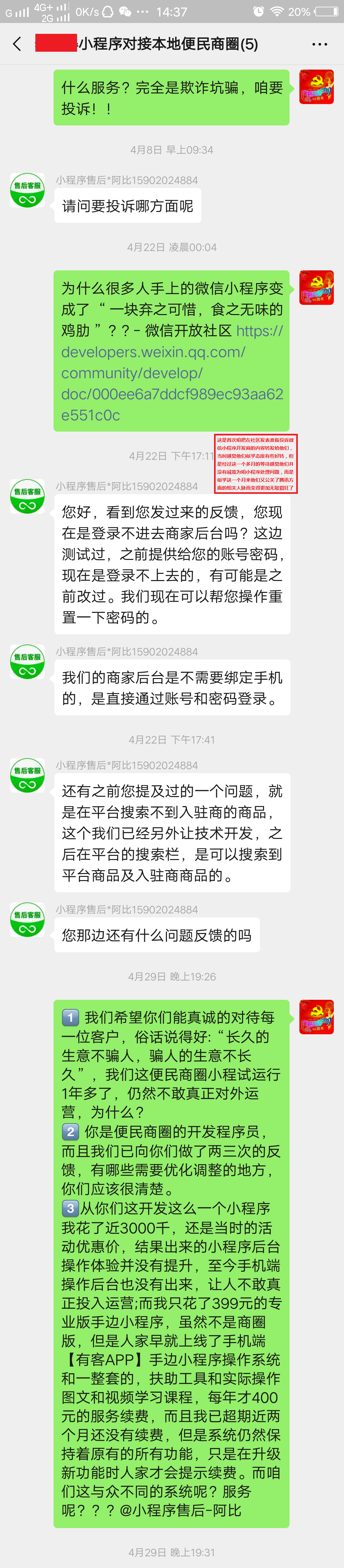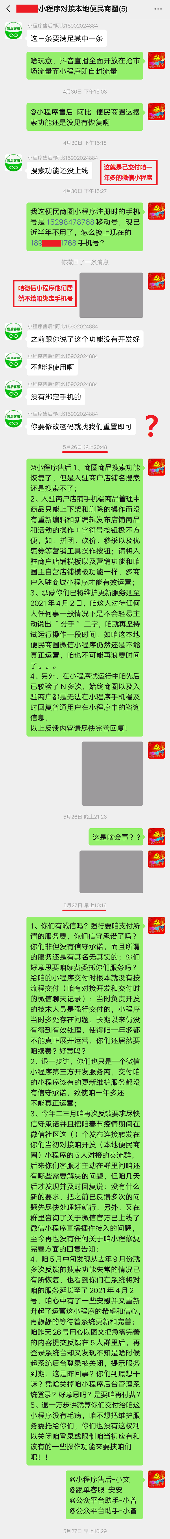尊敬的腾讯官方客服:开发服务商他们这样不诚信已严重制约着微信小程序的健康发展,究竟由谁来监督谁来管??