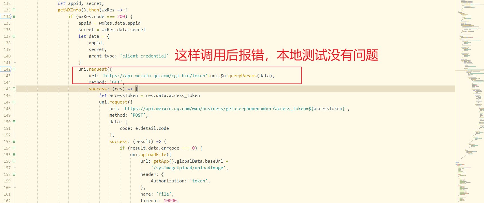 api.weixin.qq.com 相关API为服务端接口,不能在小程序内调用。你要改成在服务端调用,小程序内请求你服务端的接口。
