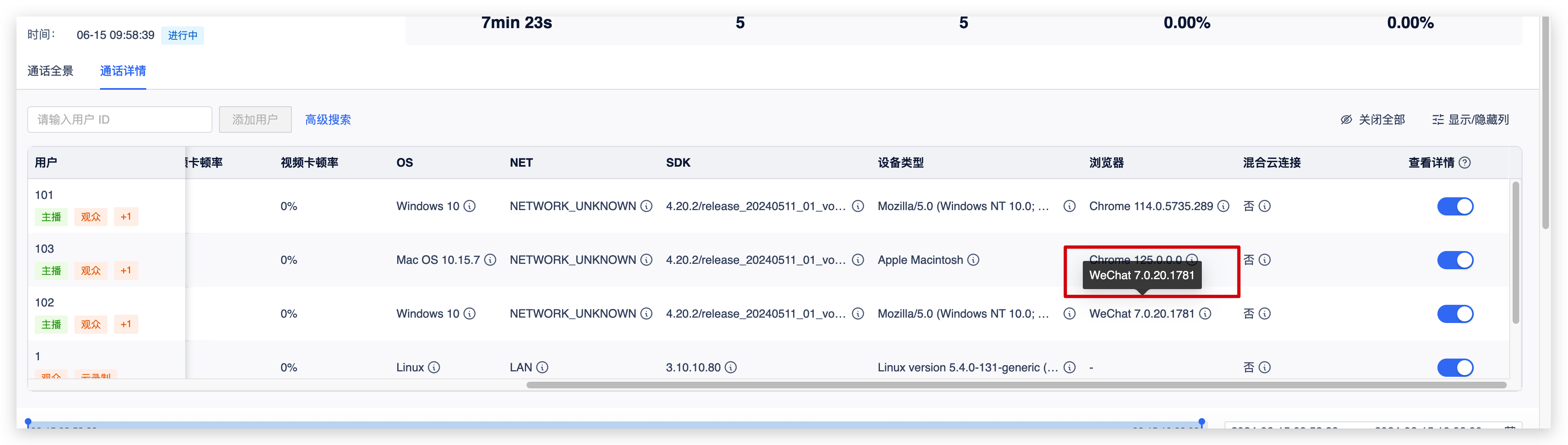 其中一台微信浏览器是 XWEB/8555,另一台的微信浏览器是 XWEB/9079