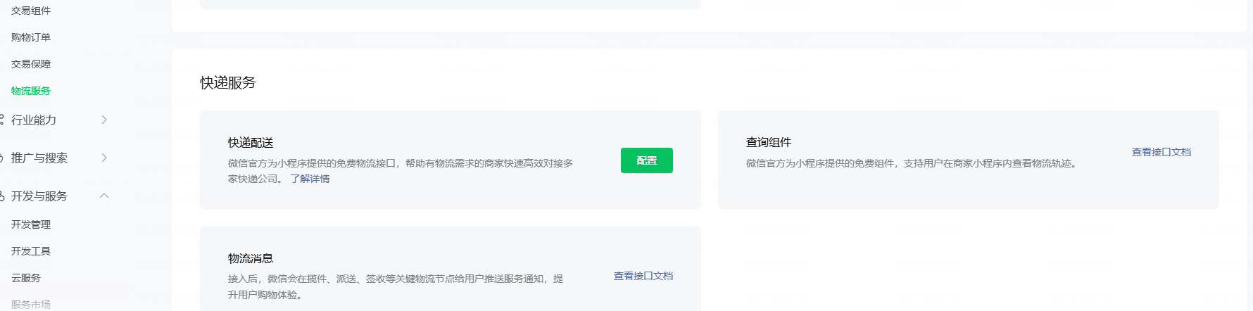 小程序类目是商家自营,目前有商城购物功能,消费者购买商品后续接入物流,但是没有订单管理菜单,发货提交物流单号时提示无api权限