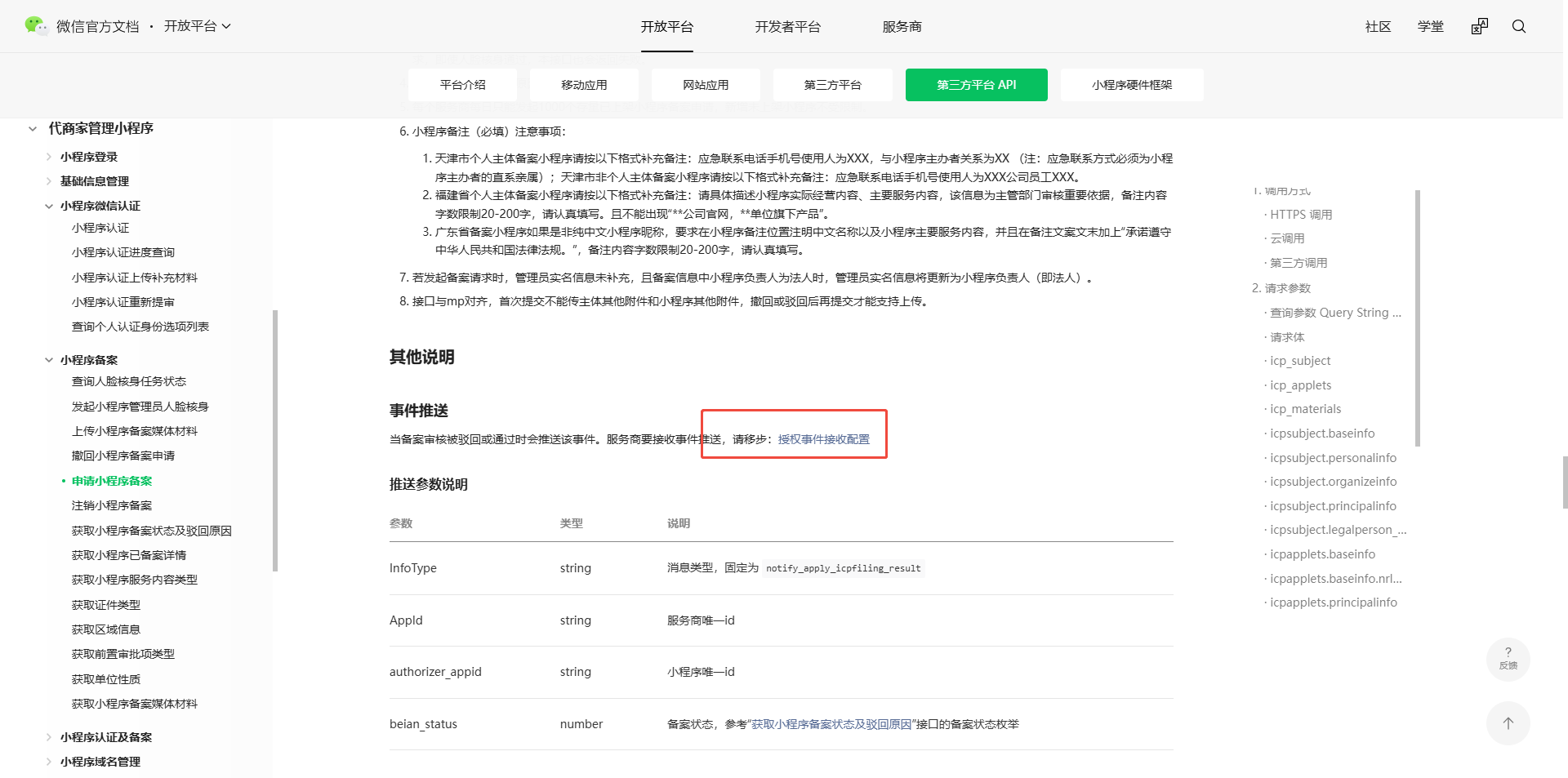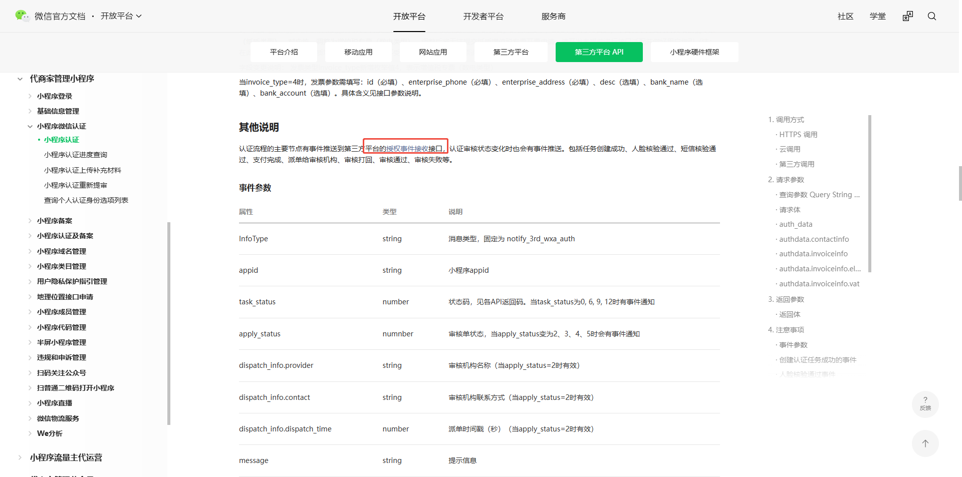 notify_3rd_wxa_auth 小程序授权三方平台后,重新认证、备案为啥没有回调?