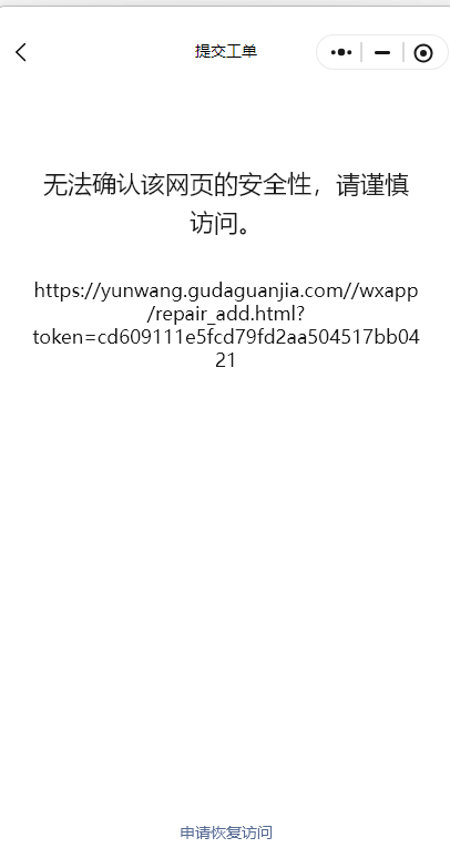 你好,经核实,域名【gudaguanjia.com 】下的链接【https://app.gudaguanjia.com/wxapp/integraldetail.html?token=63dd334cab0a78f9a7fbcdb5d24a7ea0】的内容违反《微信外部链接内容管理规范》的第3.2条“恶意对抗类内容”,属于严重违规,无法恢复微信内直接访问的服务。