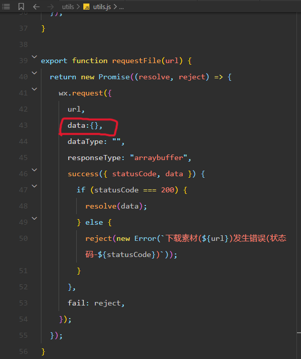 这里少写了个data:{},