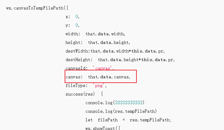 去掉 canvas: that.data.canvas,就会有失败的回调