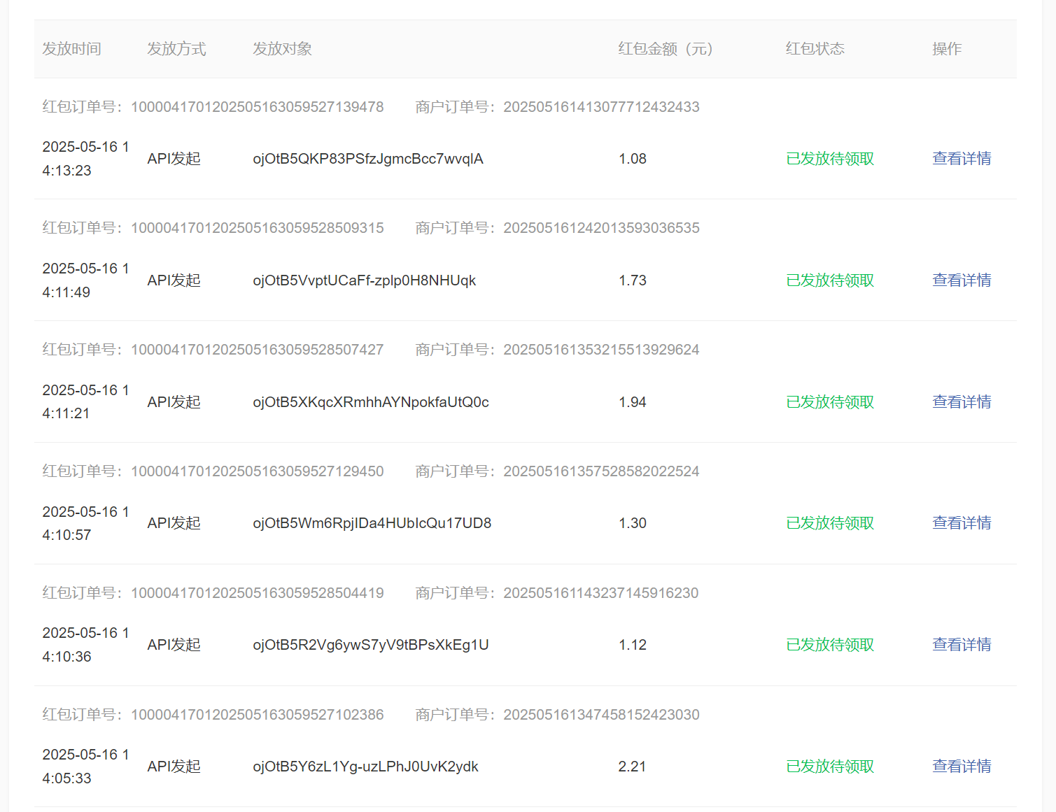 公众号发放现金红包功能正常,发放也成功,微信支付后台也显示发放成功待领取,但是就是点进去是空白的,请帮忙看一下。。