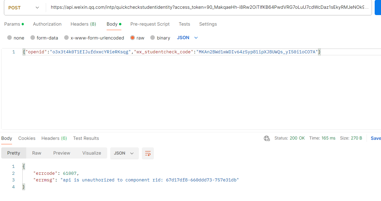 2、使用小程序appid和appsecret生成的令牌访问接口正常:
