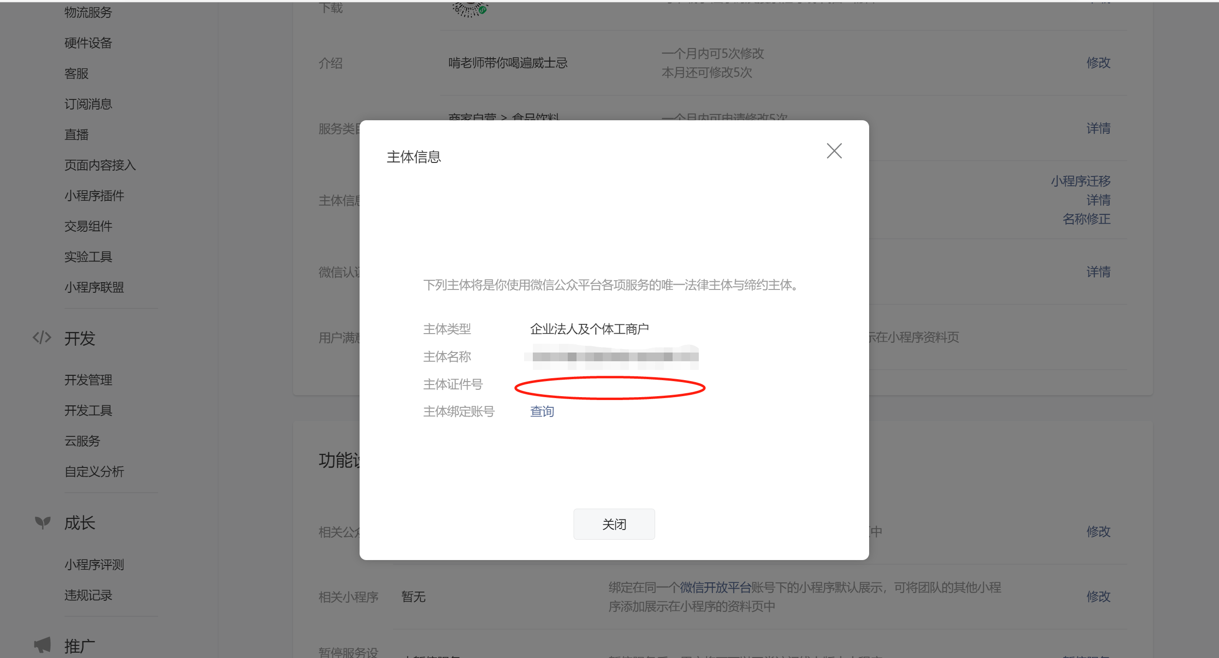 小程序认证之后,主体信息中不显示主体证件号,怎么解决?