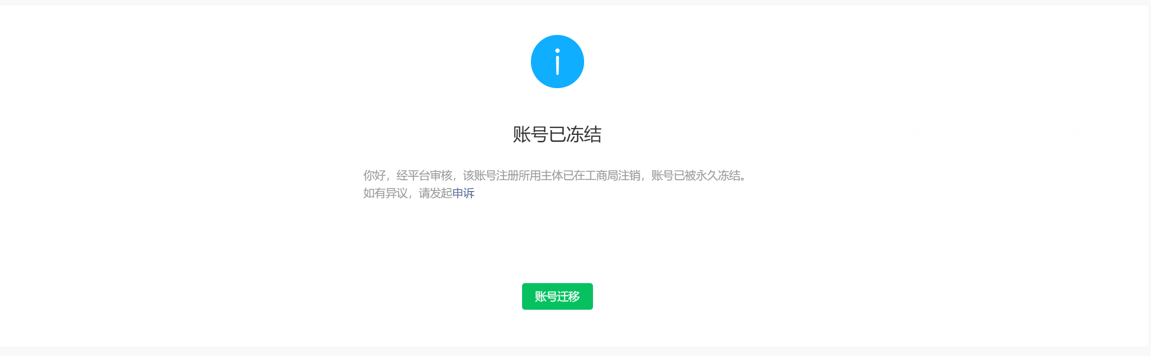 另外提示账号已冻结:“你好,经平台审核,该账号注册所用主体已在工商局注销,账号已被永久冻结。”,是因为这个原因而被判为恶意注册?